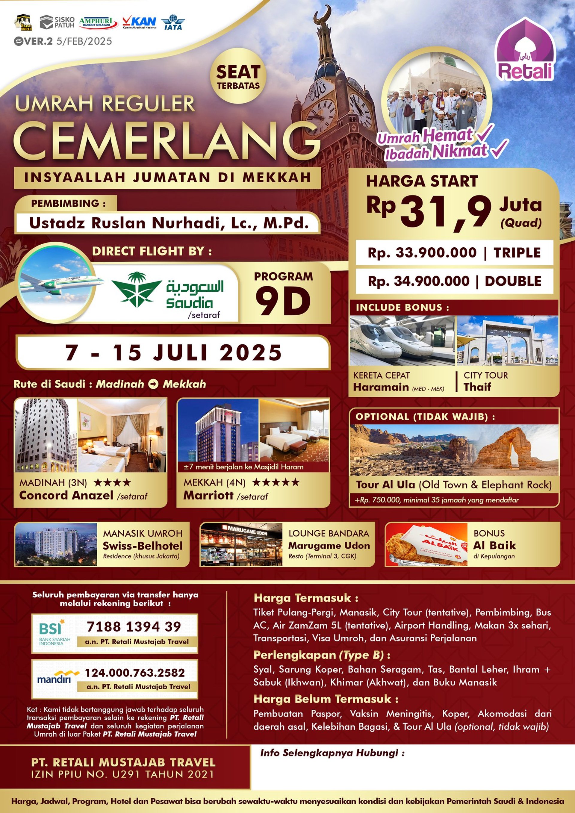 Umroh Retali memberikan pelayanan yang sangat baik. Pengalaman berangkat umroh sangat memuaskan dan timnya sangat profesional. Saya sangat merekomendasikan mereka!