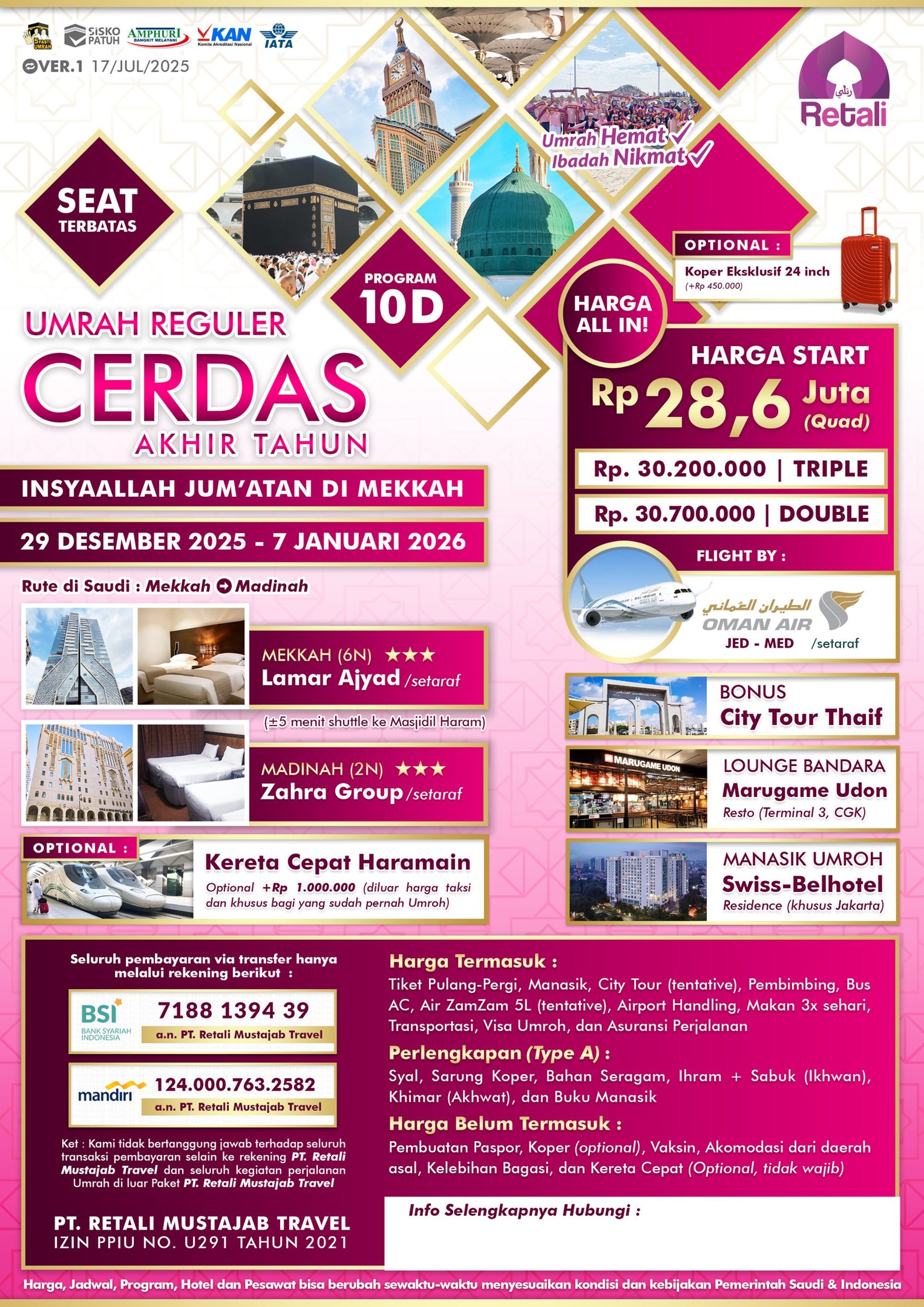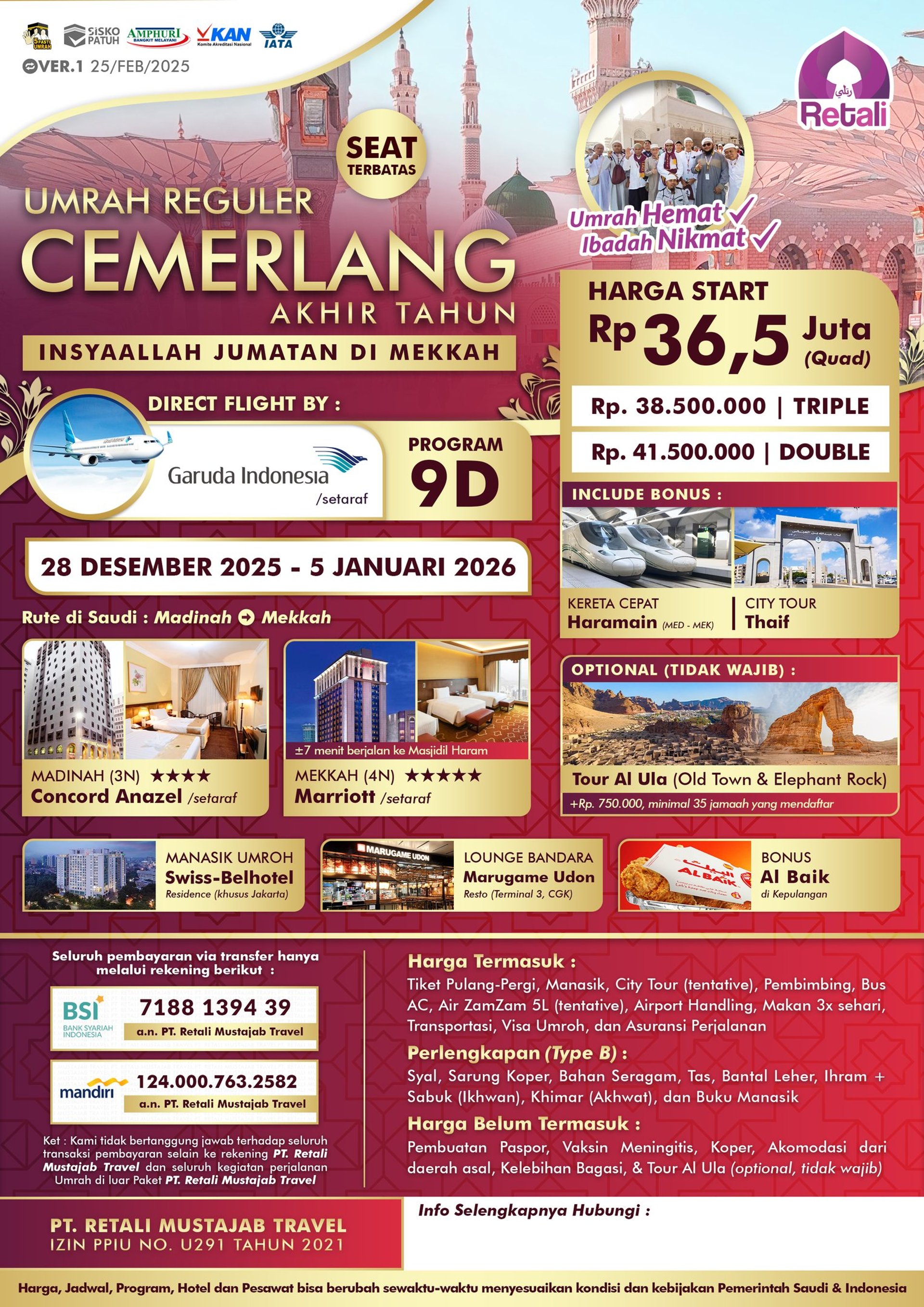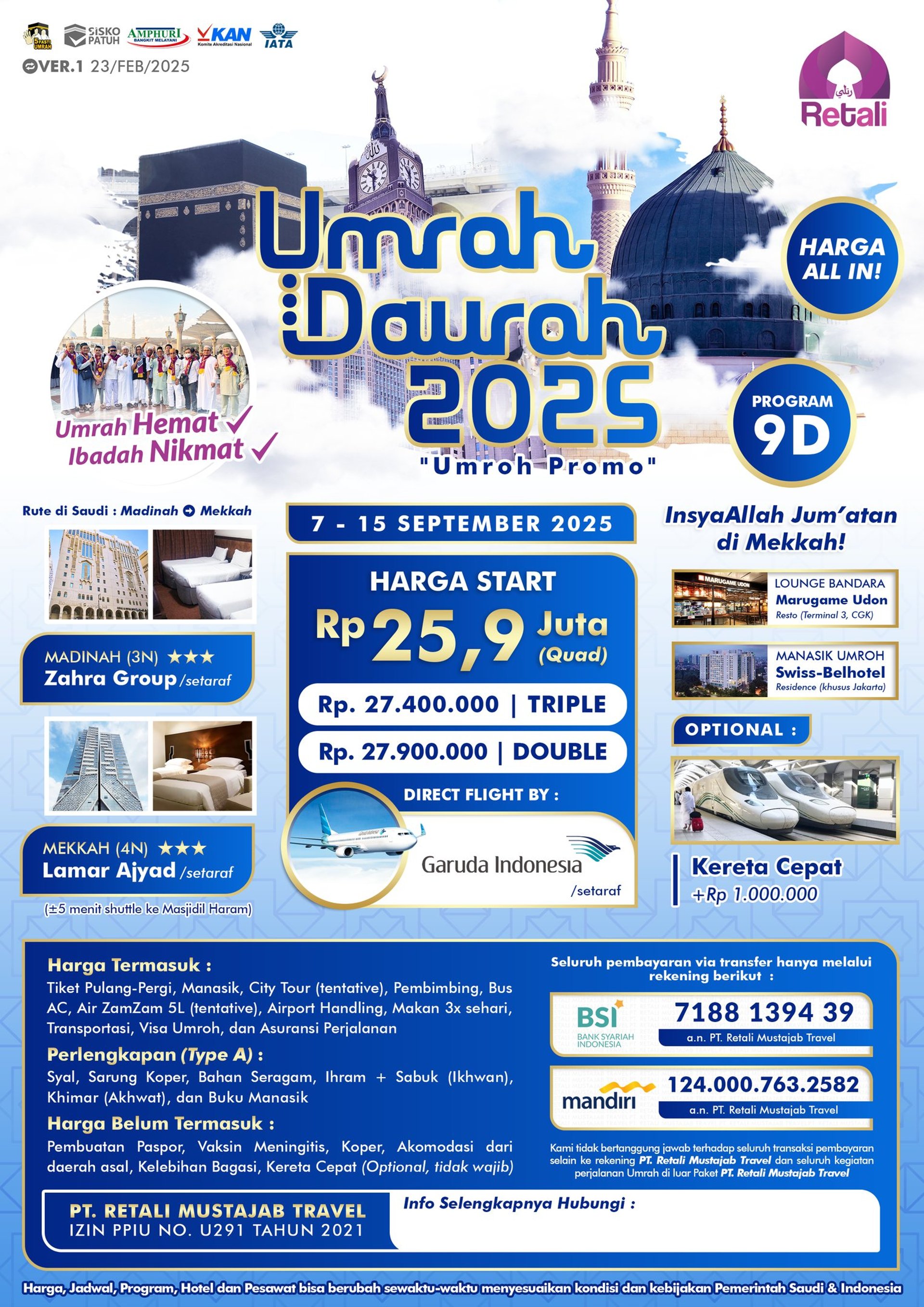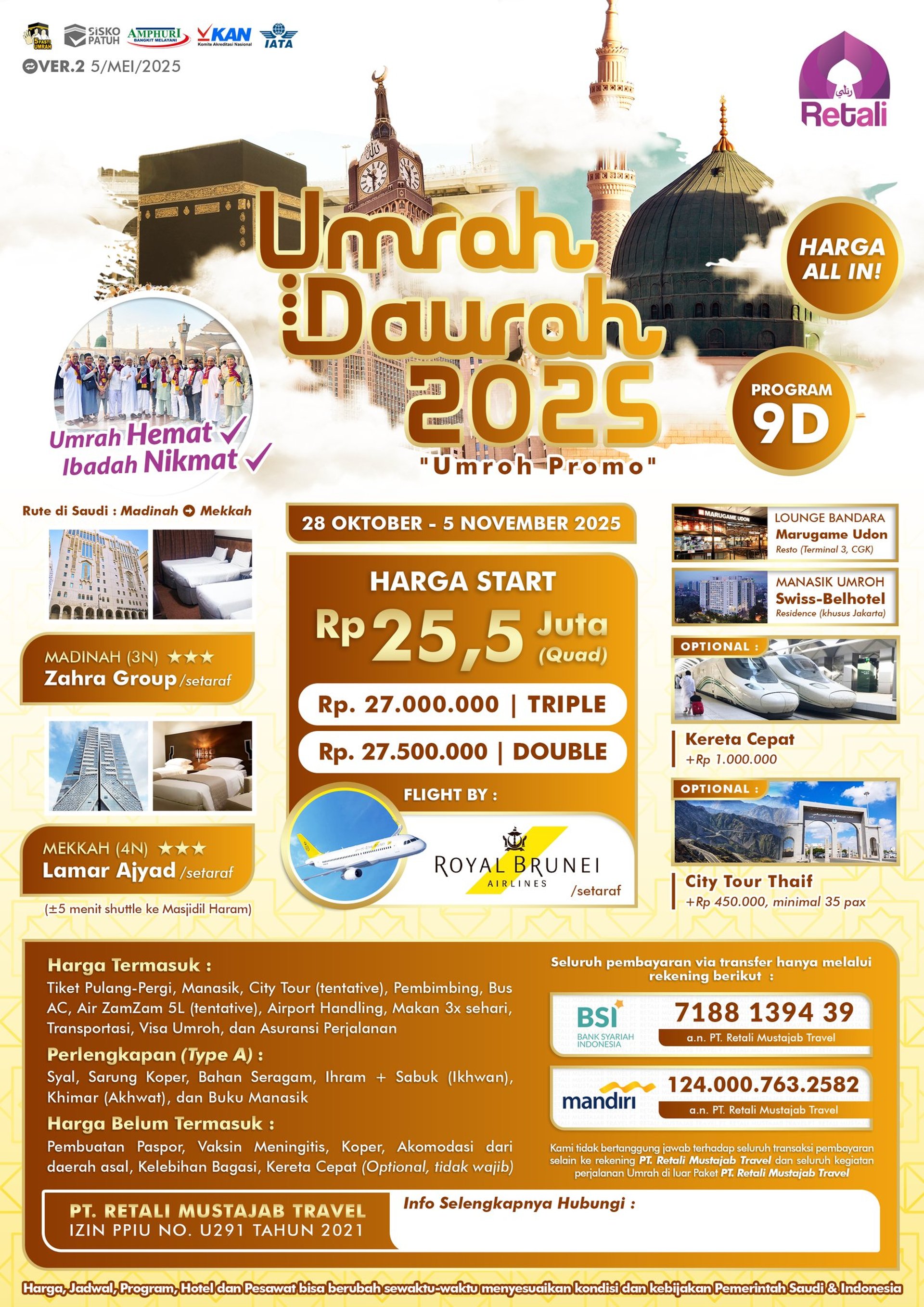 Pengalaman saya bersama Umroh Retali sangat luar biasa. Tim yang profesional dan berpengalaman membuat perjalanan umroh saya terasa nyaman dan aman. Terima kasih Umroh Retali!