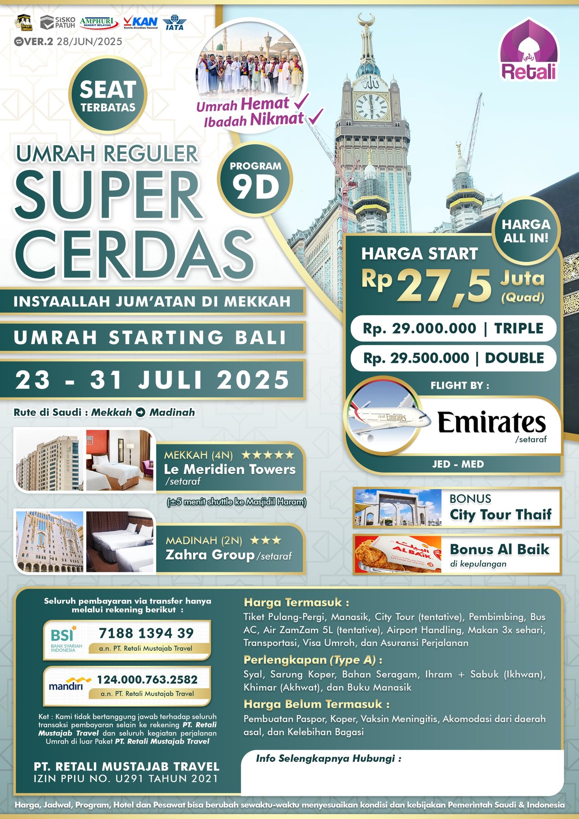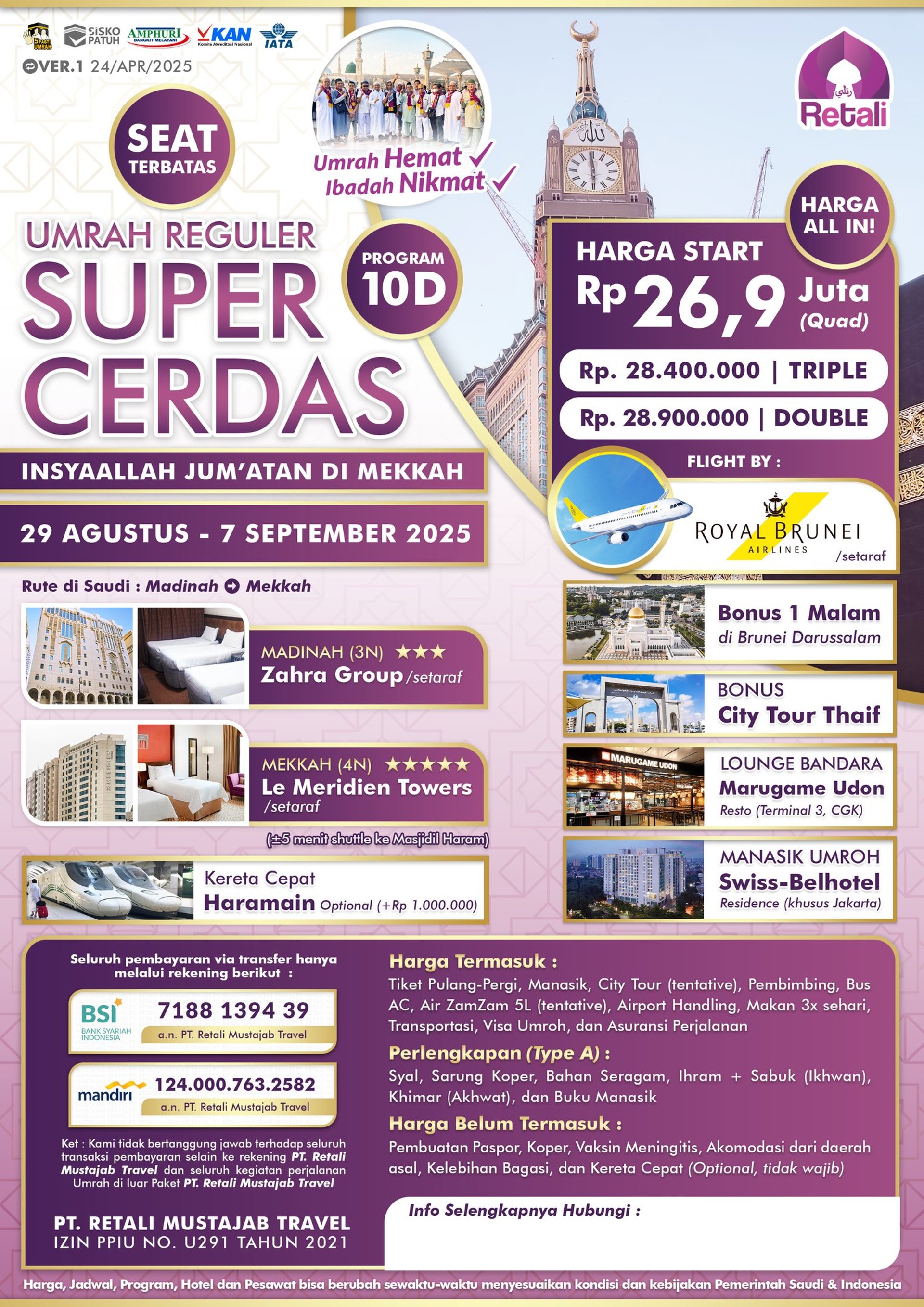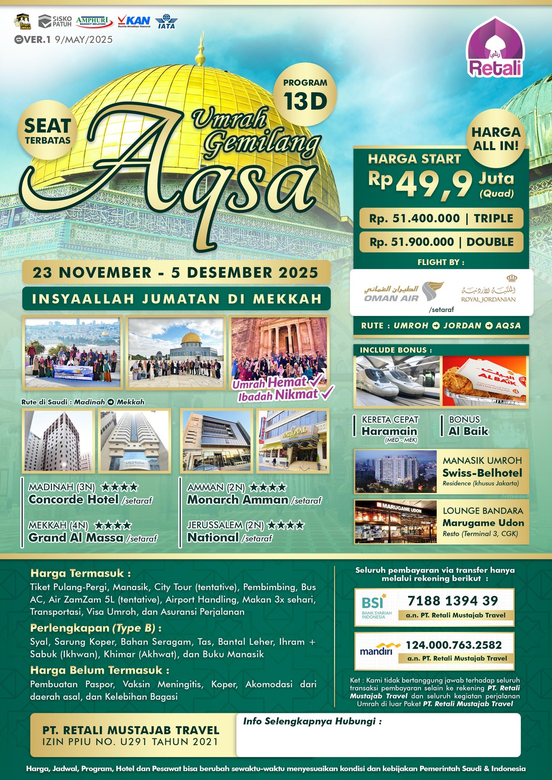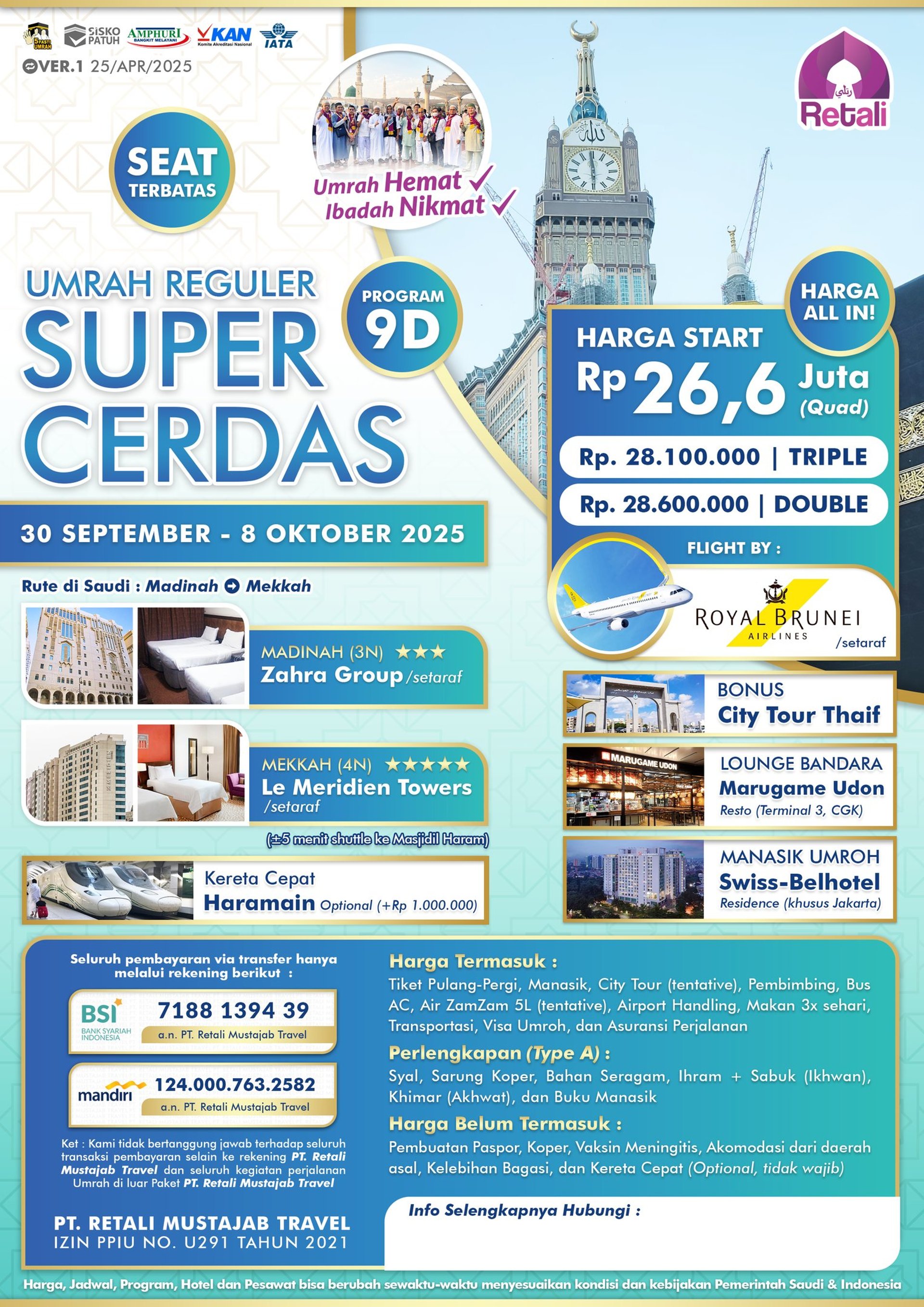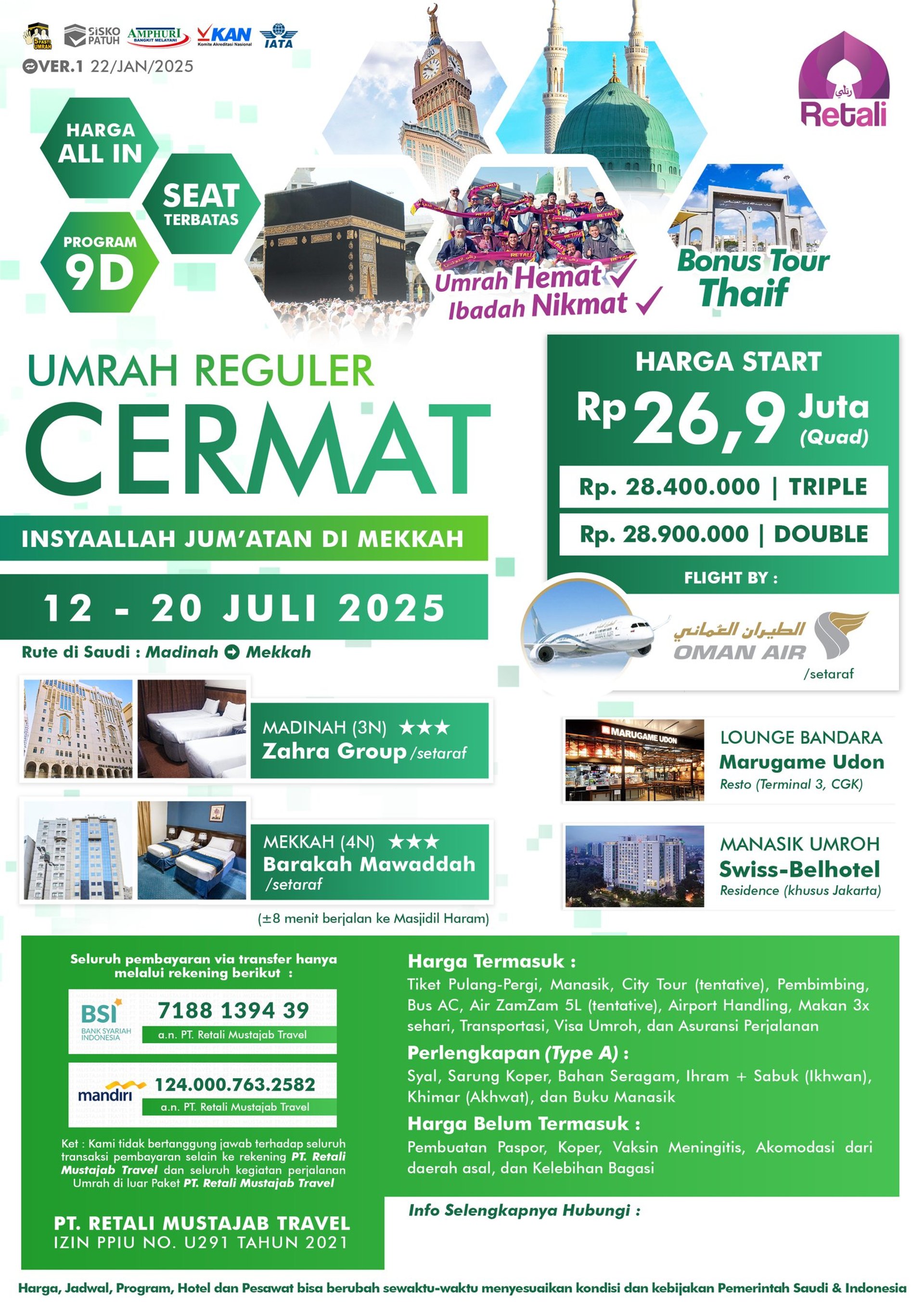 Pengalaman saya bersama Umroh Retali sangat luar biasa. Tim yang profesional dan berpengalaman membuat perjalanan umroh saya terasa nyaman dan aman. Terima kasih Umroh Retali!
