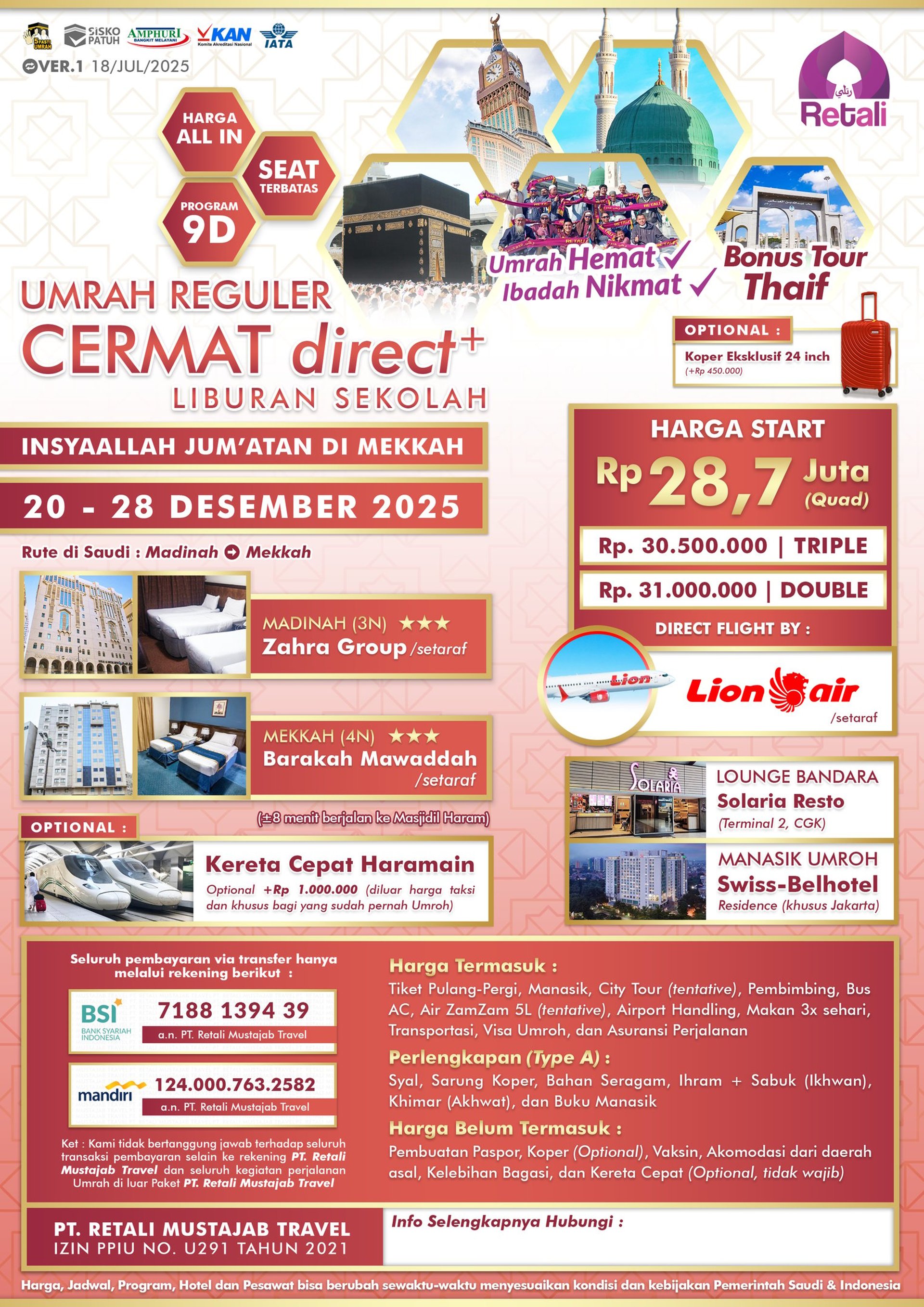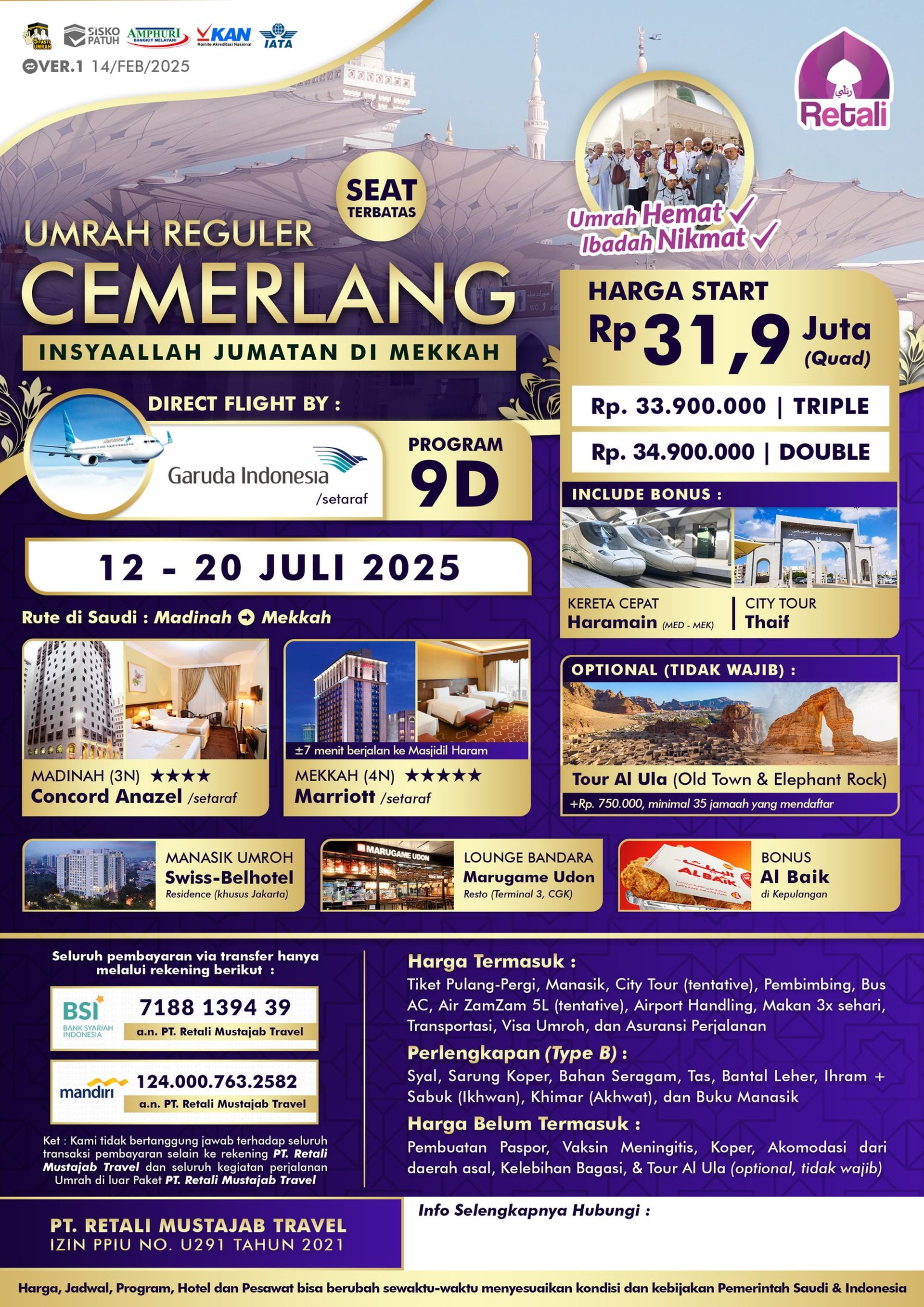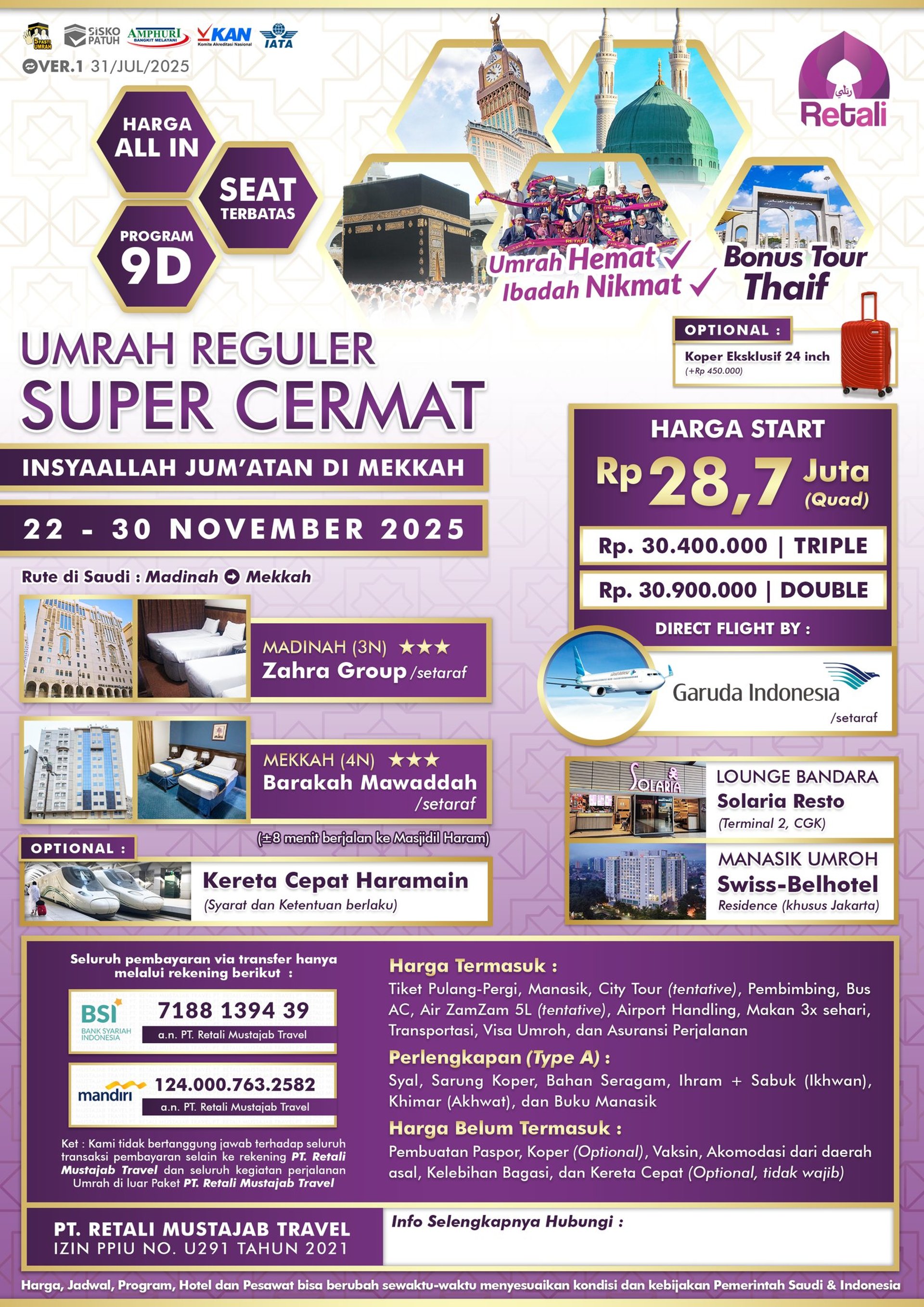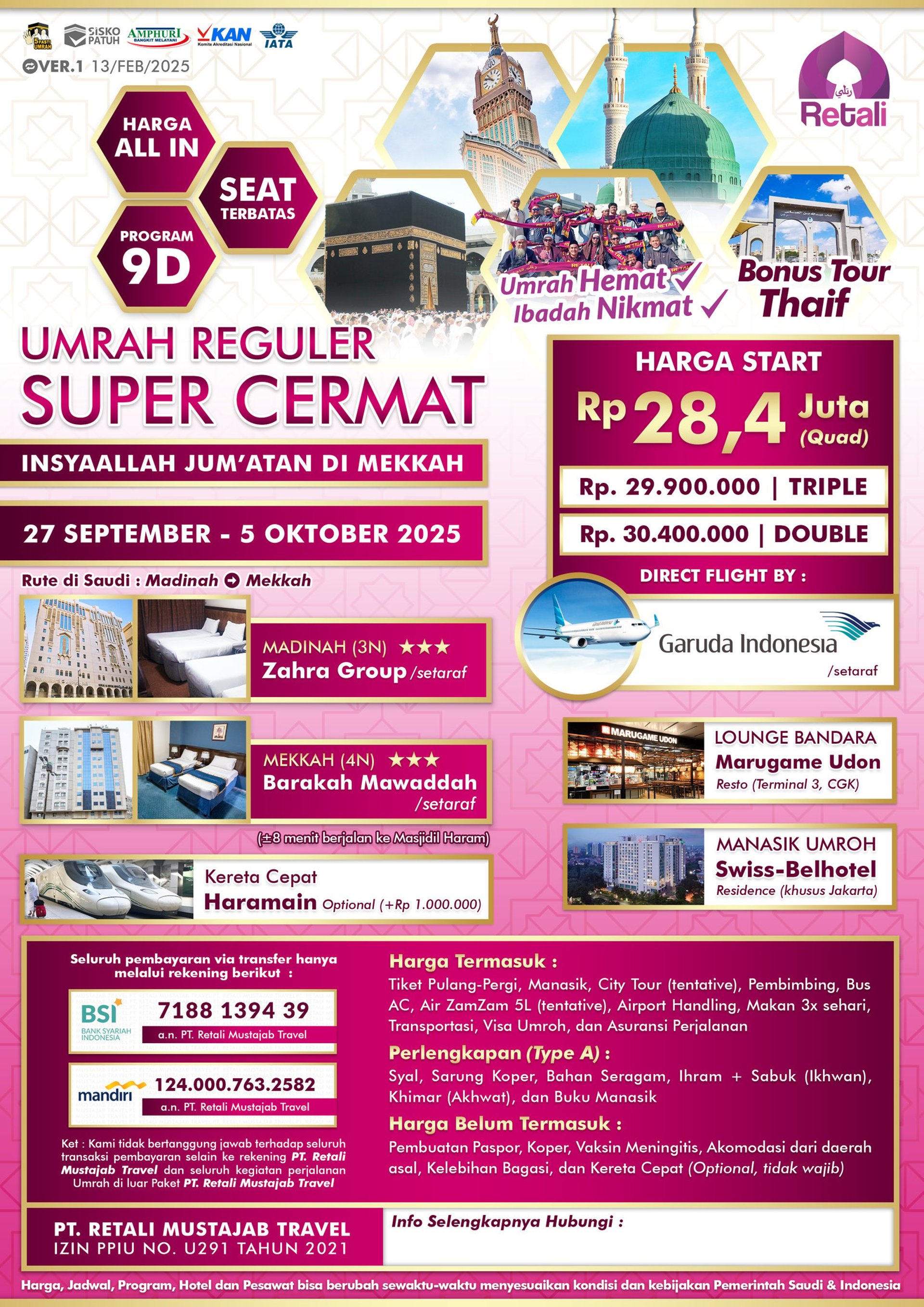 Keberangkatan setiap bulan dengan kloter terjadwal untuk kenyamanan jamaah.